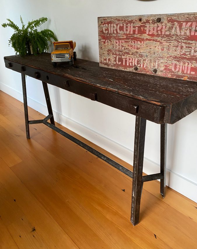 Chunky hallway console table made from 70mm thick reclaimed Canadian Oregon. These beautiful beams were reclaimed from the old New Zealand Herald building on Albert st in Auckland and now live on to be beautiful pieces of furniture.